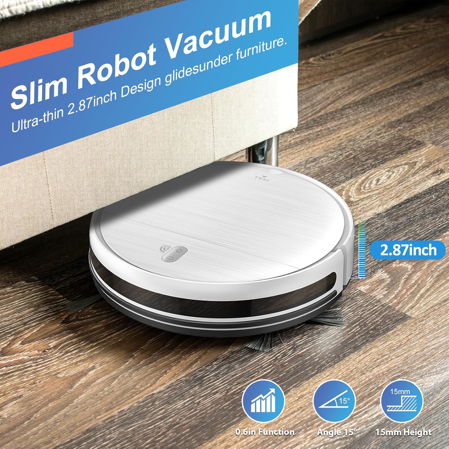 [Intelligent Obstacle Avoidance Upgraded Again]: The robot vacuum has advanced 3D precise obstacle avoidance function, a full set of sensors can intelligently identify and avoid white walls, stairs, and obstacles. 2.87” slim design helps the robot vacuum cleaner to reach every corner of a house or narrow space, clean leftover dirty areas, and keep your house neat.