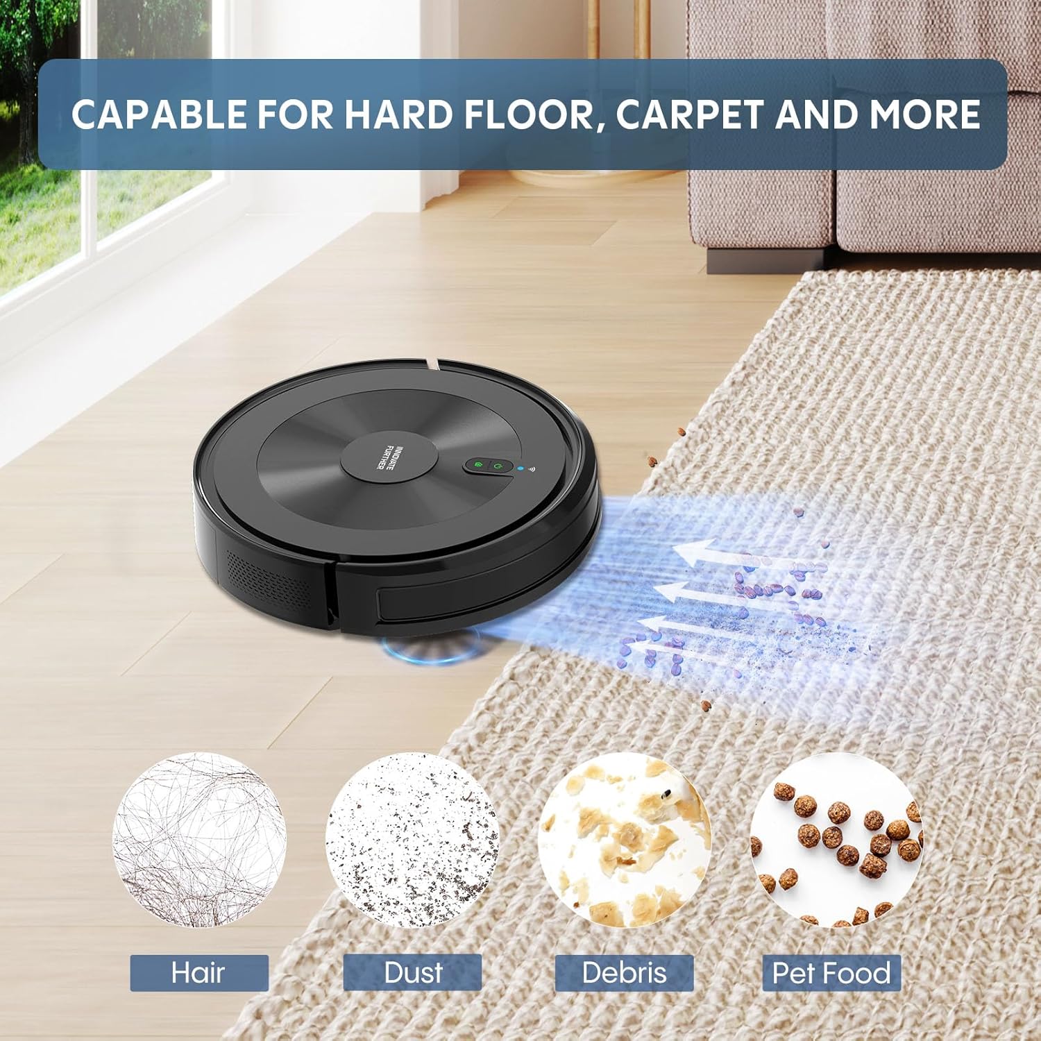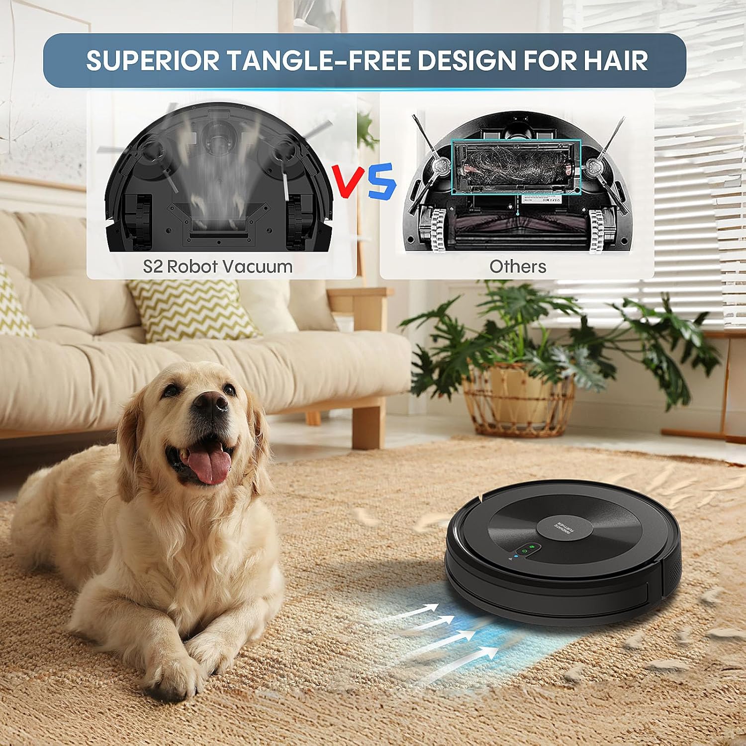 【3.1 Inch Ultra-Slim Design】With 3.1 inch ultra-slim profile, the S2 robotic vacuums effortlessly accesses hard-to-reach spaces under sofas, beds, and other low-clearance furniture. Watch it emerge from these tight spaces with a full load of dust and debris – a testament to its exceptional cleaning performance.