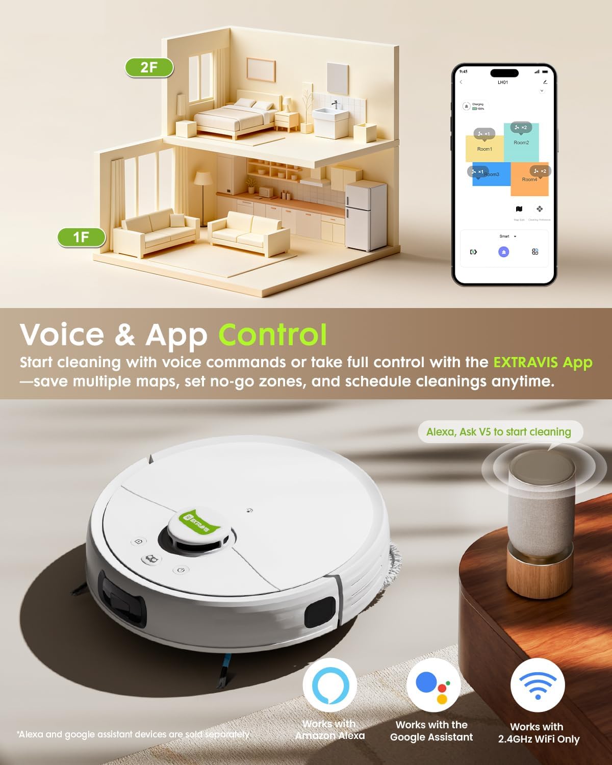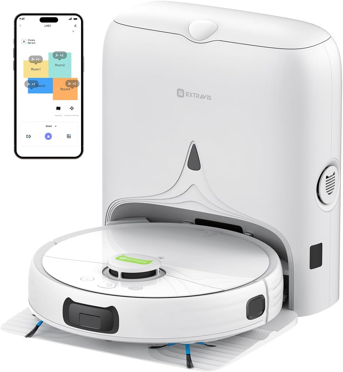 LDS Laser Navigation for Smarter Coverage – The V5 PRO robot vacuum uses precision LDS laser mapping to scan and map your home in real time. It plans efficient routes, avoids obstacles, and keeps cleaning even when pets run around. Through the EXTRAVIS app, you can create no-go zones, customize schedules, and control it from anywhere.