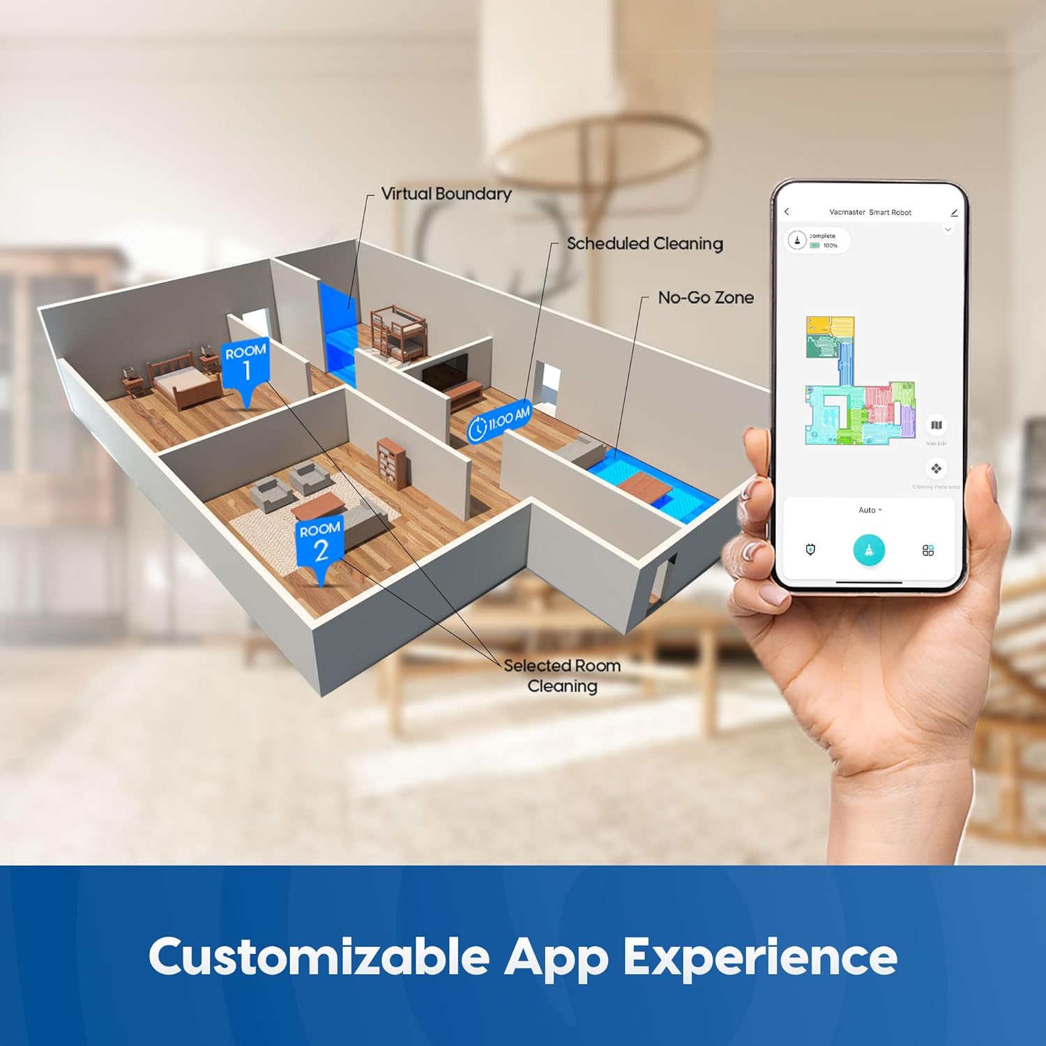 Customizable App Experience: Tailor your cleaning with 6 modes and 4 suction levels. Set virtual boundaries, no-go zones, and more directly through the app