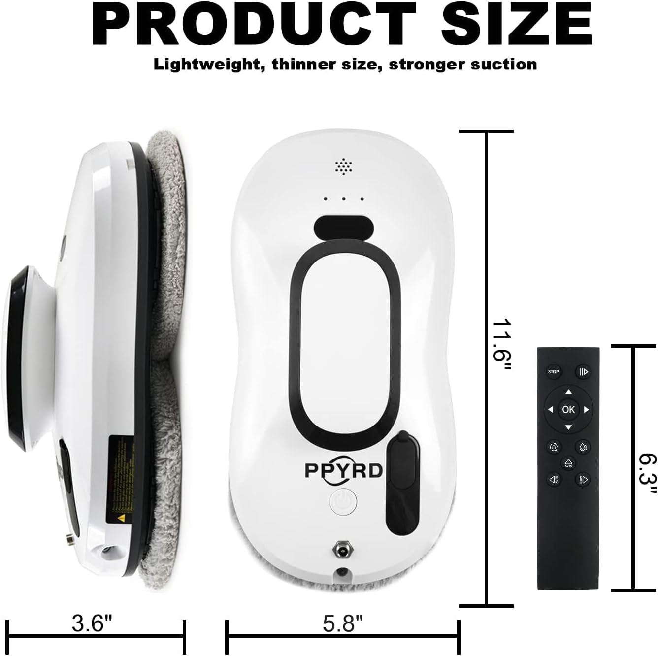 Remote Control – The window cleaning robot can be controlled remotely using infrared remote control; The robot has three cleaning modes to meet different cleaning needs; suitable for glass mirror/stainless steel/wood veneer/marble/seamless tile/frosted glass/aluminum foil glass/bathroom frameless glass