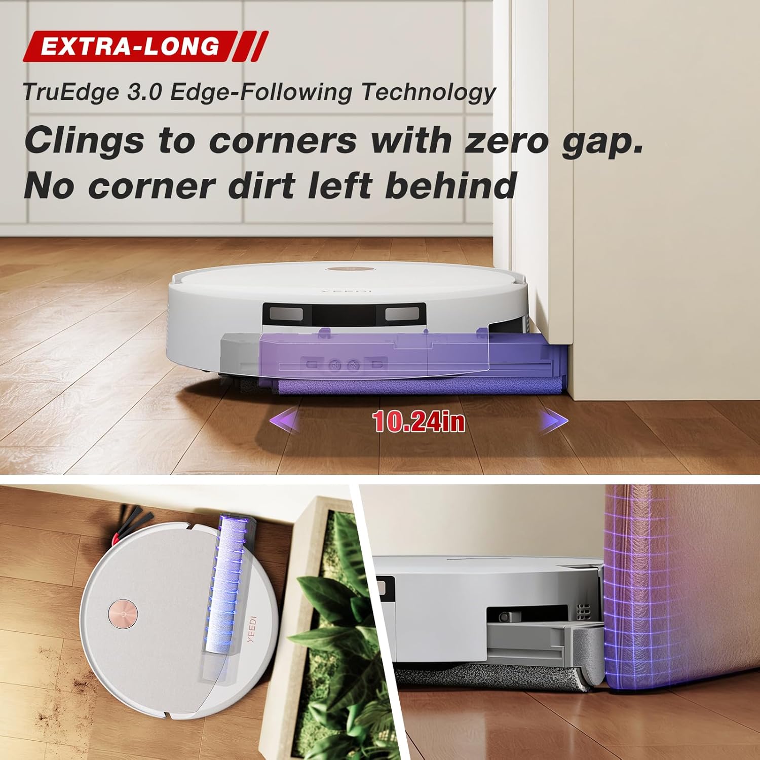 [ZEROTANGLE 4.0 TECHNOLOGY] Built with ZeroTangle 4.0 technology: Golden Ratio Side Brush achieves 99% hair pickup efficiency, while the Cyclone Main Brush ensures 0% hair tangling, reducing maintenance hassle for pet owners and families with long hair.