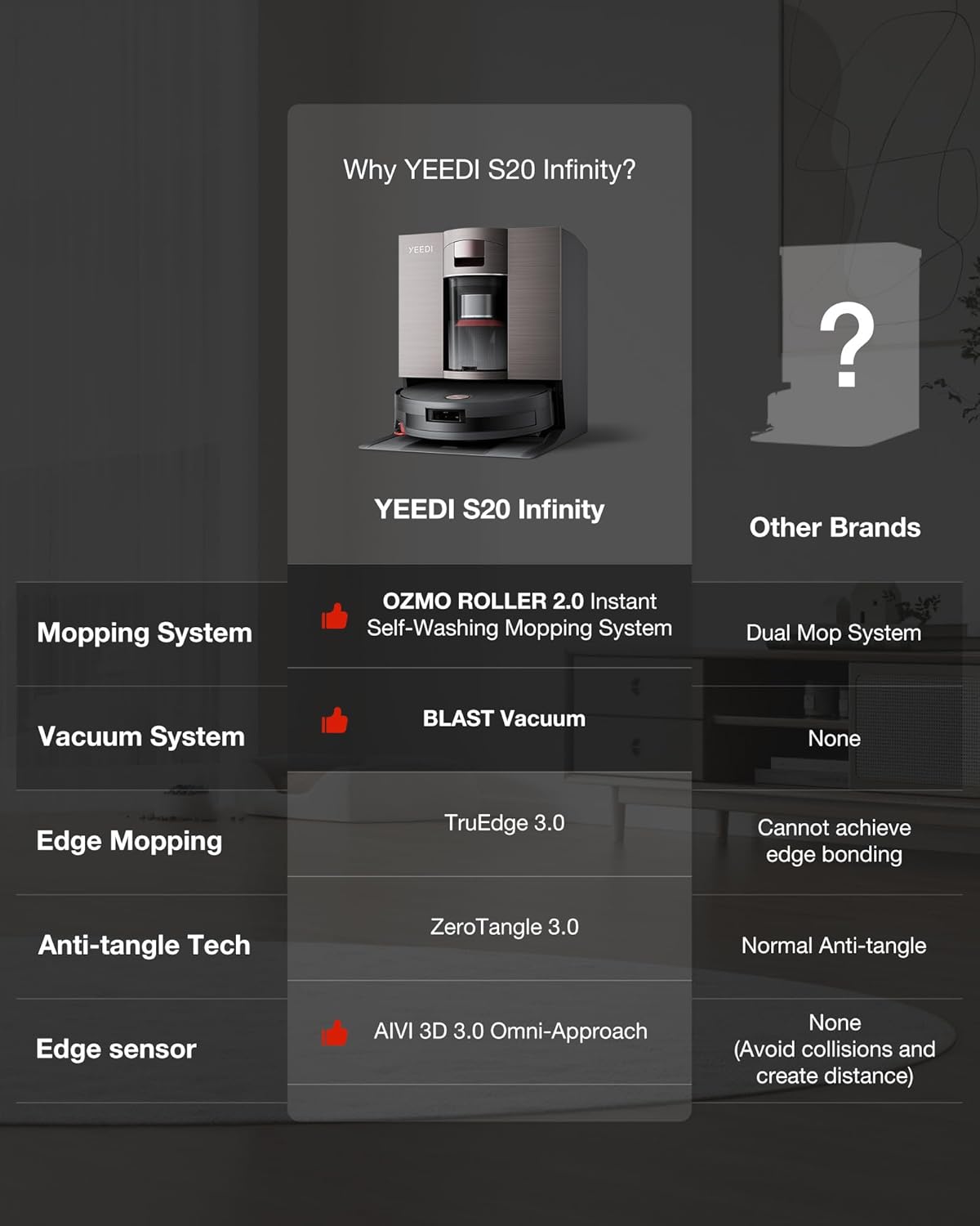Be the first to review “Yeedi S20 Infinity Robot Vacuum&Mop with 19,500Pa Blast Suction, PowerBoost Charging, OZMO Roller 2.0 Self-Washing, Bagless OmniCyclone Station with Hot Mop Washing&Heat Drying, AIVI 3D Navigation”